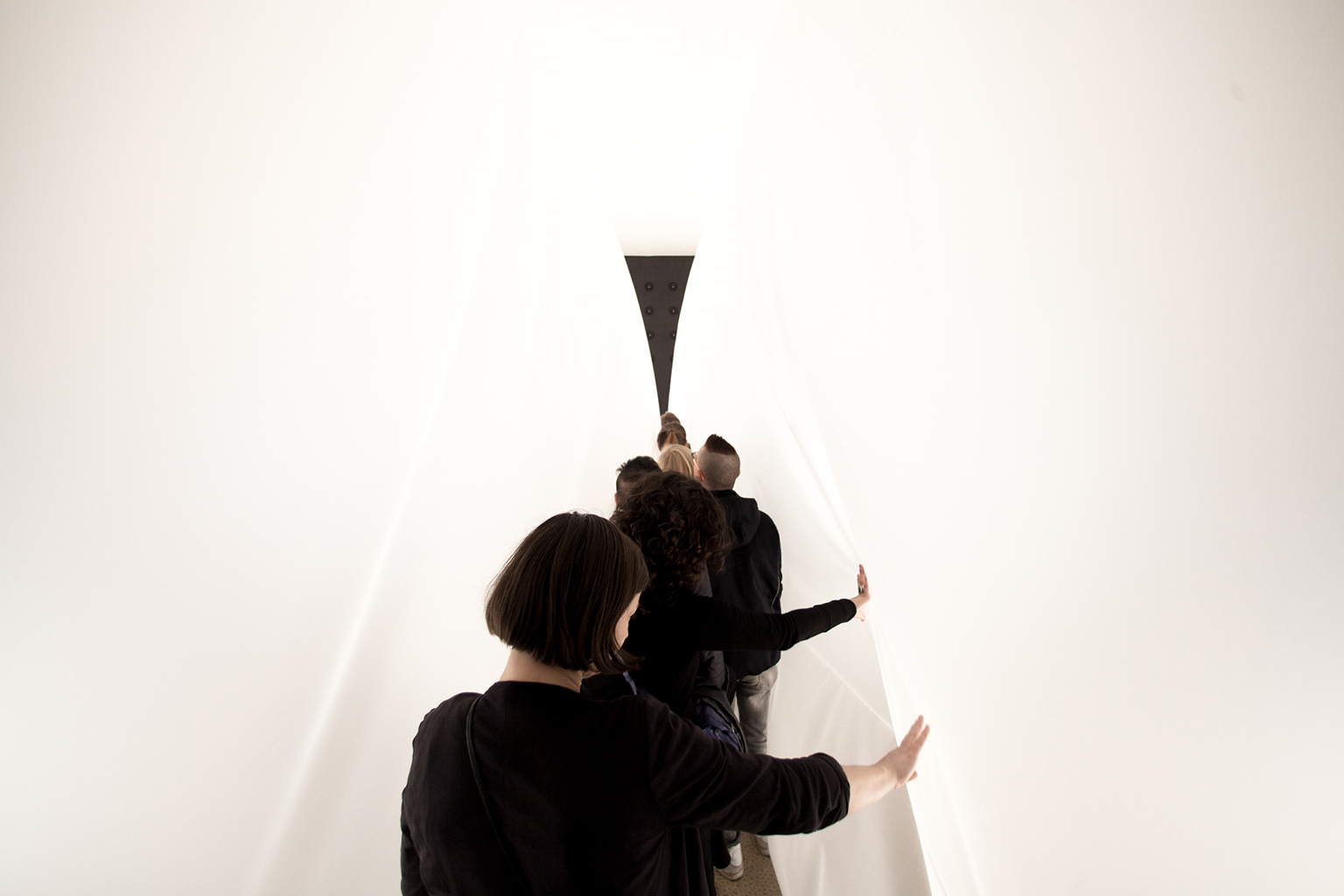 Unexpectedly steers the focus from what surrounds us, to what is immediate, here and now, offering a distorted Upon entering the public will be embraced between breathing walls constantly changing their physical volume, for approximately 5 minutes, creating a perception of being inside a living organism.