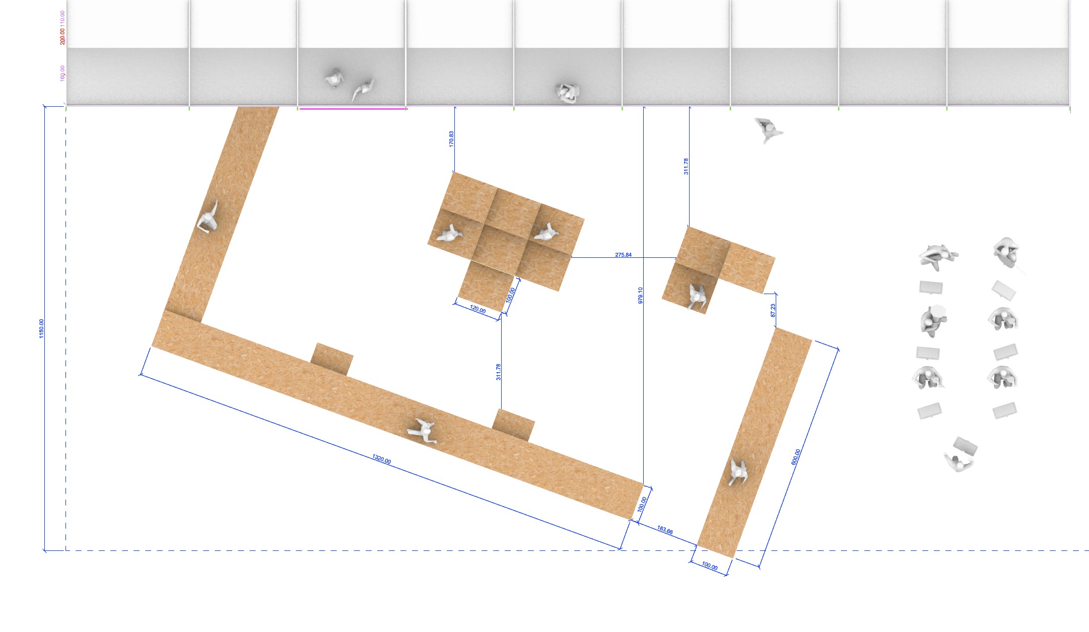 For the stage design, the idea was to use recycled 100x120 cm EPAL Pallets as walking surfaces, having a first L-shaped catwalk, like a fashion show, and in the areas behind near the arches, the platforms raised in height, creating different levels of heights, where the singers can perform safely, and also be clearly visible from the last row of spectators, given that the seats have a slope opposite to normal theatres.