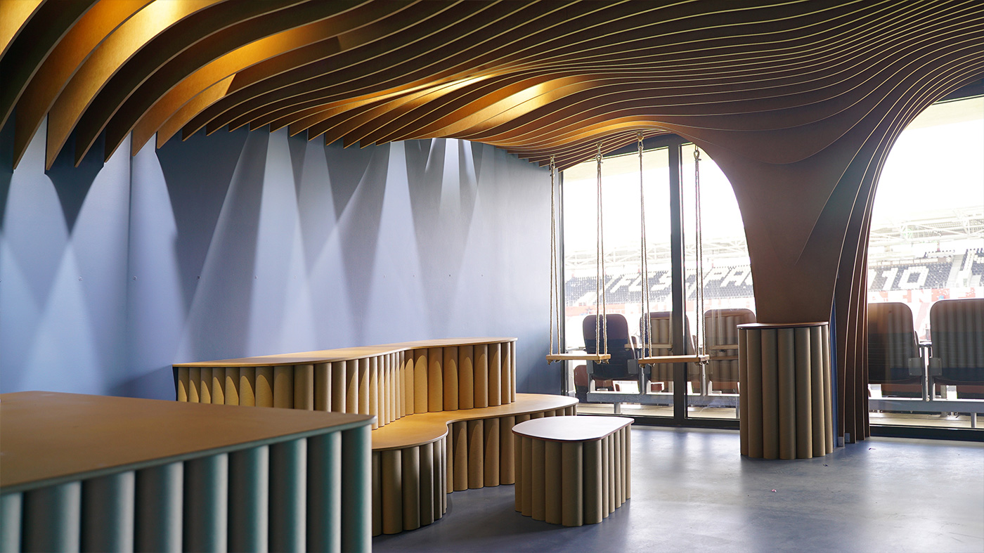 A site-specific permanent installation was created within the St.Pauli Stadium in the Followfood-Followfish loggia, reflecting the corporate identity of the brand.